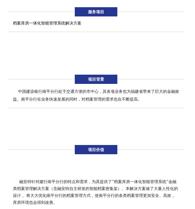 中國建設銀行南平分行處于交通方便的市中心,其各項業務也為福建省帶來了巨大的金融效益。南平分行在業務快速發展的同時,對檔案管理的需求也在不斷提高。及尚針對建行南平分行的特點和需求,為其提供了“檔案庫房一體化智能管理系統”。